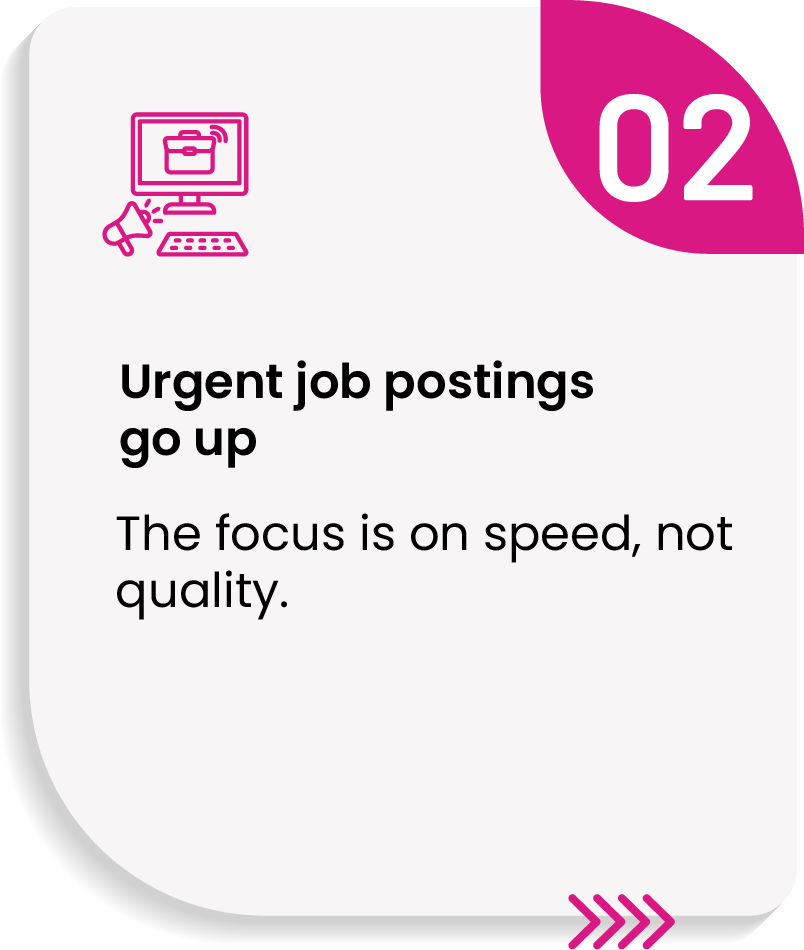 In this environment, Talent Acquisition (TA) teams become order-takers instead of strategic partners. Rather than shaping tomorrow’s workforce, they are forced into constant triage—filling roles instead of building relationships. The cost of this approach is high: Delayed hires reduce productivity, while poor fits increase turnover and erode morale.